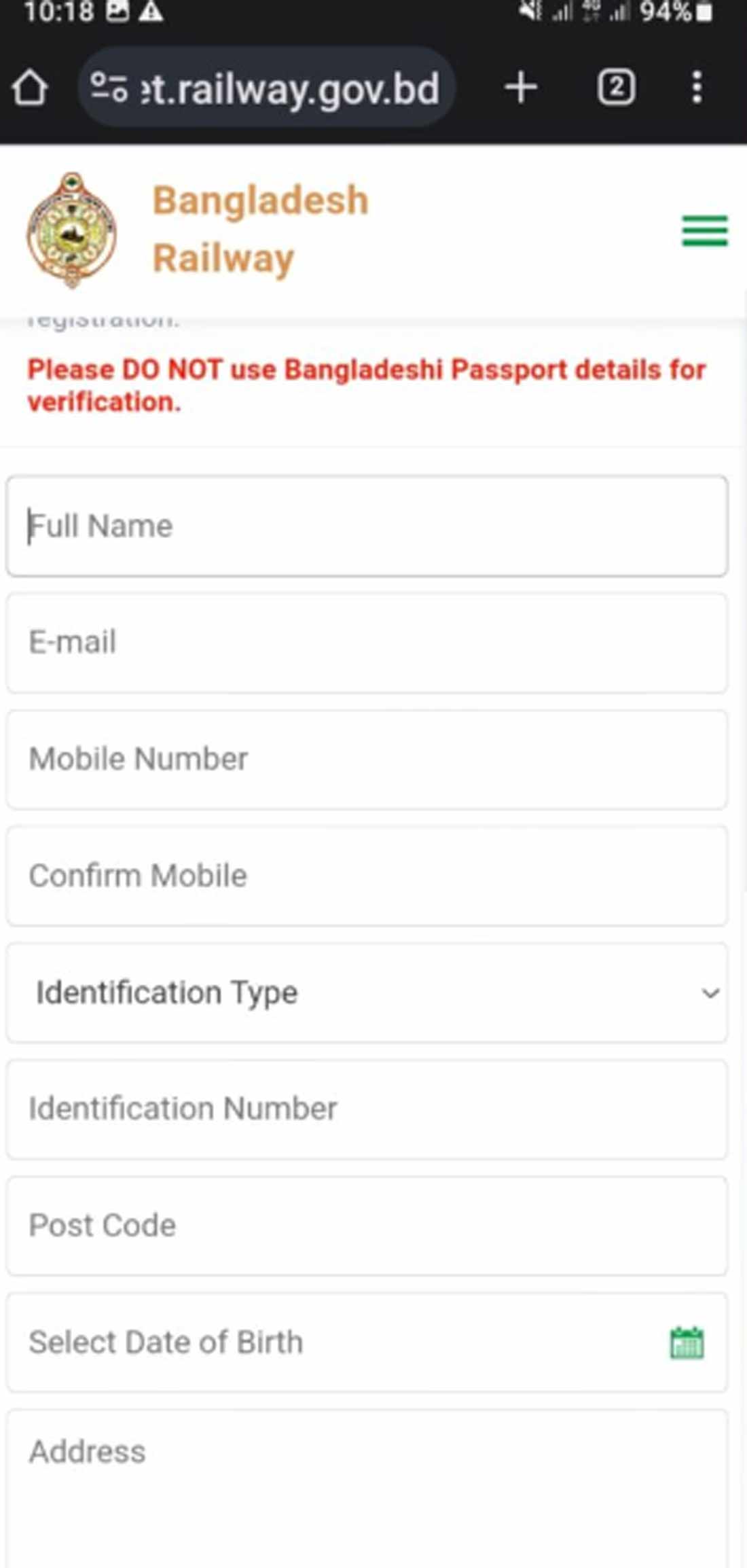 রেলওয়ে ওয়েবসাইটে গিয়ে রেলওয়ে সেবাতে একটি অ্যাকাউন্ট রেজিস্ট্রেশন করতে হবে।