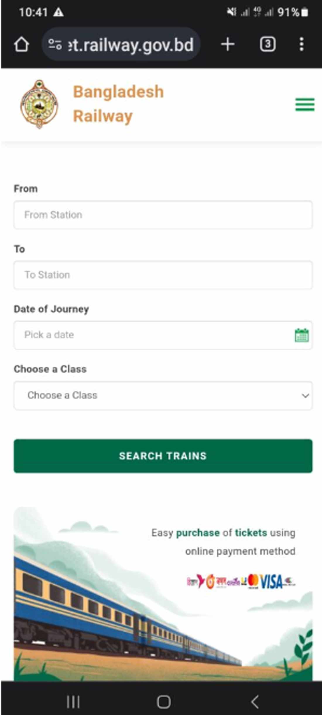আপনি যদি মোবাইল দিয়ে ট্রেনের টিকিট কাটতে চান সে ক্ষেত্রে আপনাকে বাংলাদেশ