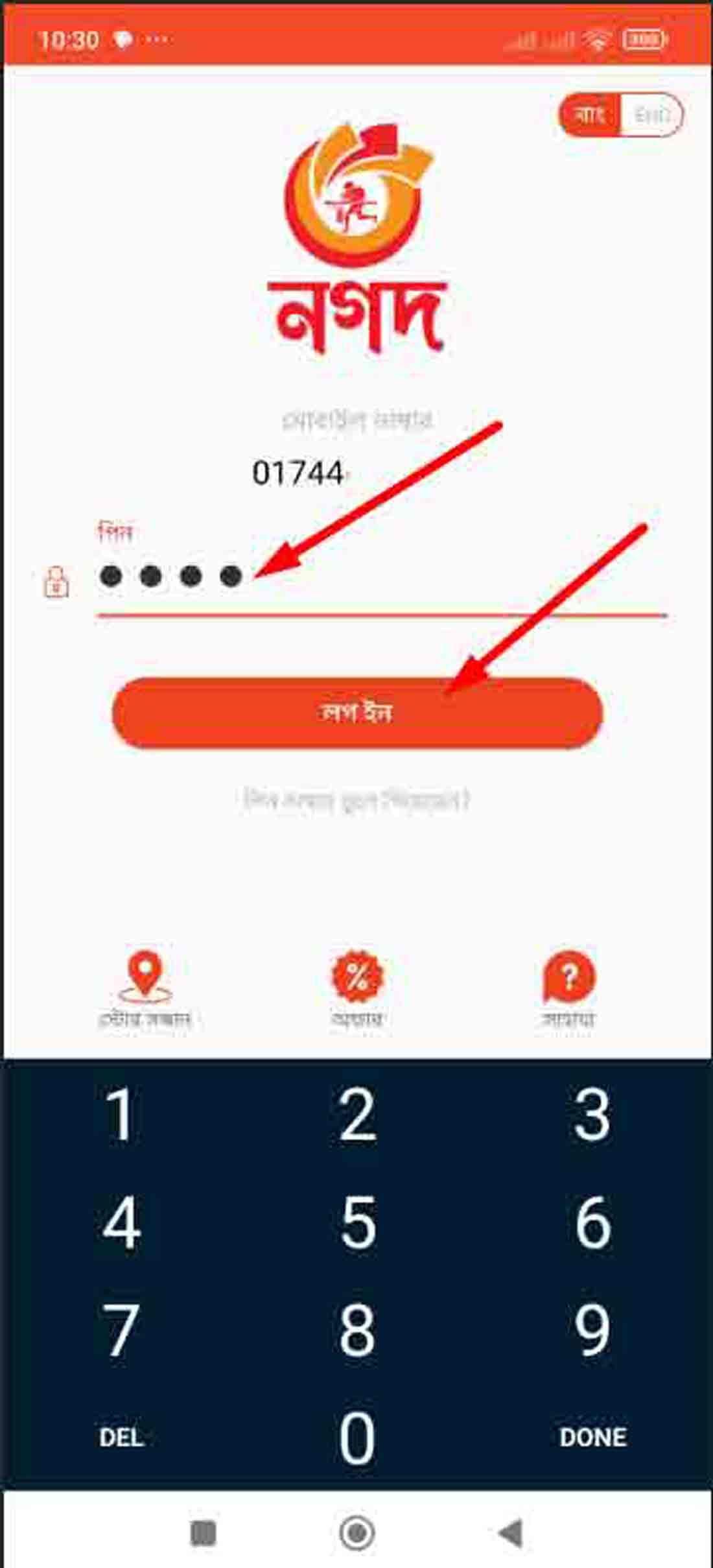 ধাপ ১ঃ প্রথমে দেখবেন পিন। এখানে আপনি আপনার পিন দিয়ে লগ ইন এ চাপ দিন।