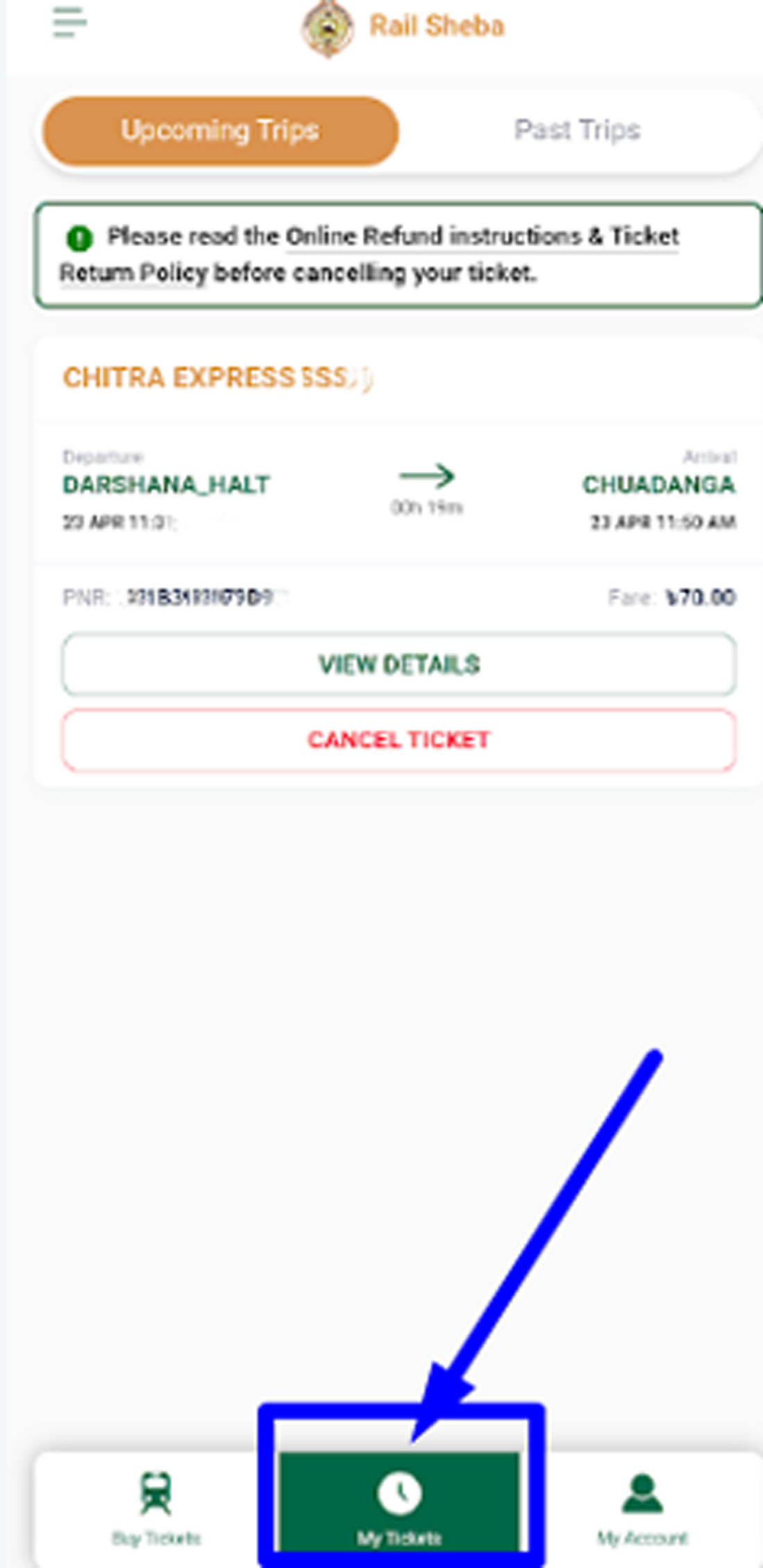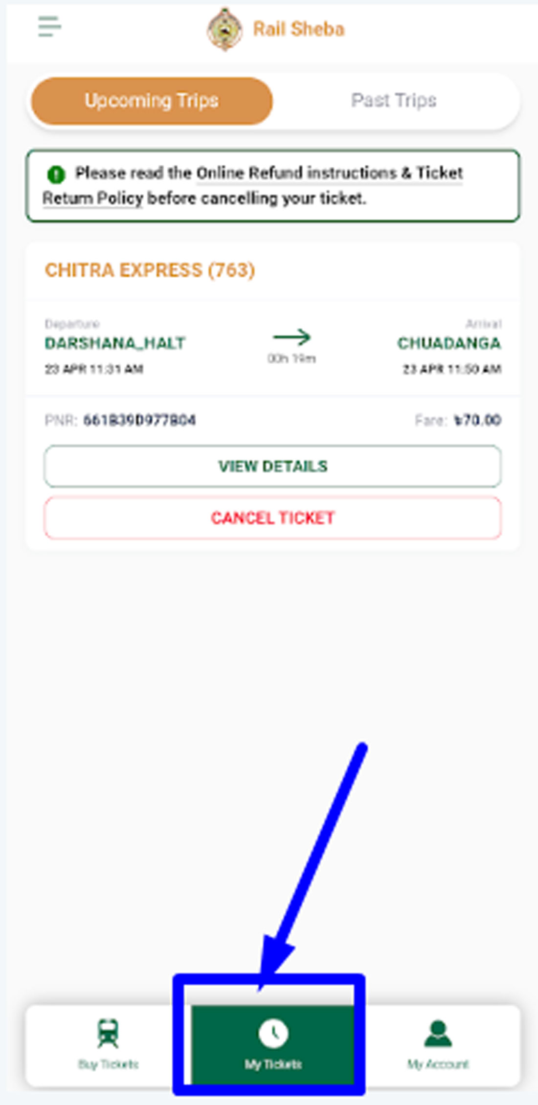 আপনি অতি সহজেই আপনার অপ্রয়োজনীয় ট্রেনের টিকিটটি বাতিল করতে পারবেন্।