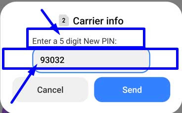 ৫নং ধাপ : Send করার পর আপনার সামনে একটা Carrier inof নামক একটা অপশন আসবে । সেখান Enter a 5 digit New PIN লিখা দেখবেন। এখন আপনি আপনার Keybord থেকে 5 সংখ্যার পিন লিখে Send বাটনে ক্লিক করুন।
