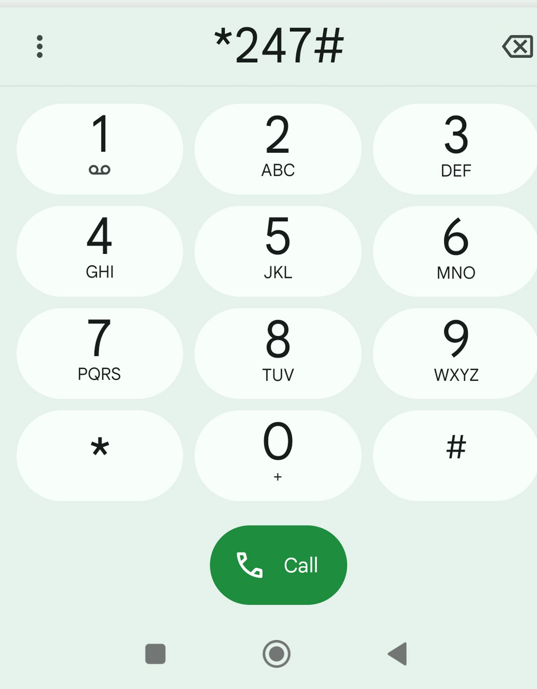 ৭নং ধাপঃ আবারও আপনি আপনার Keybord থেকে *২৪৭# ডায়েল করুন।